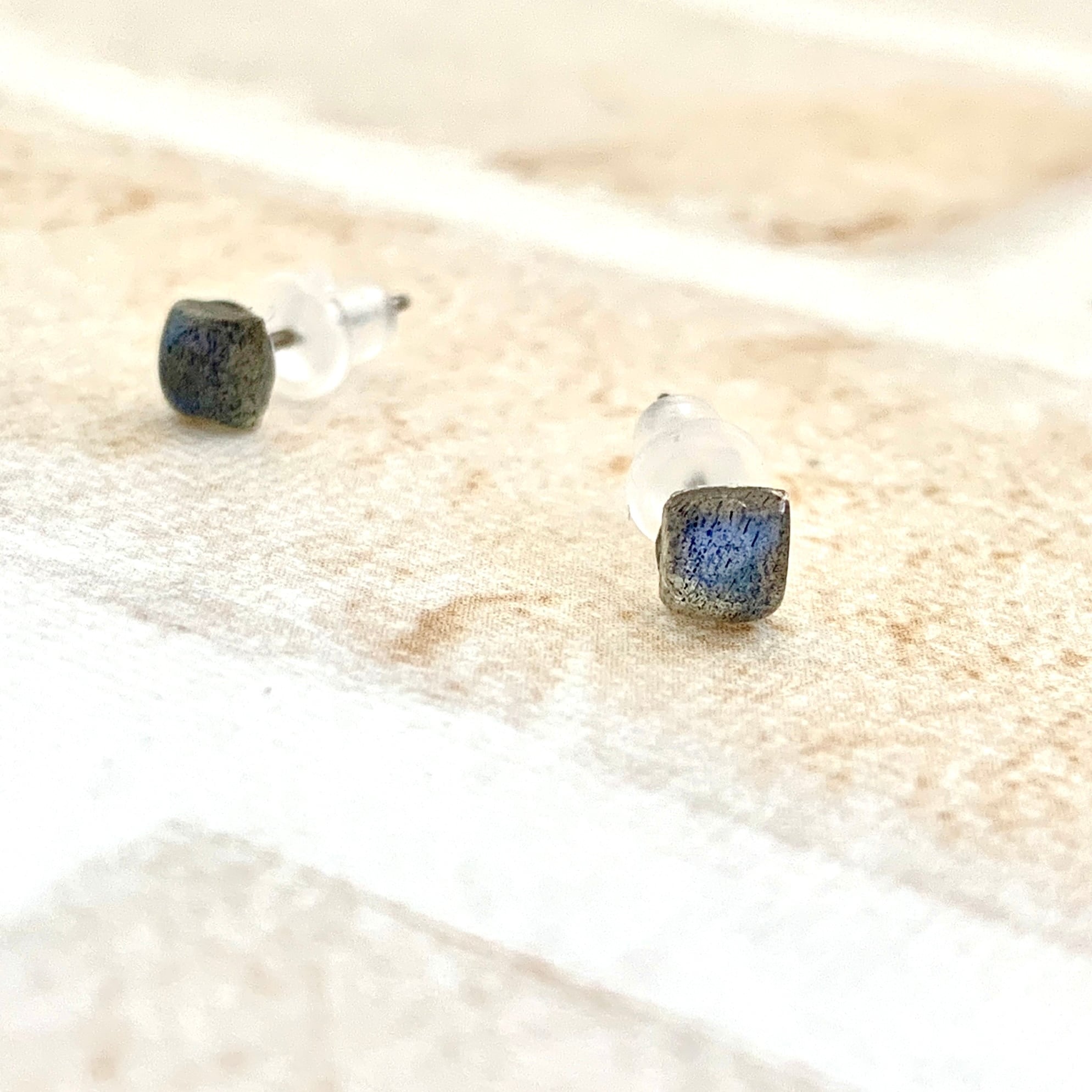 小粒サイズの石の中に綺麗なラブラドレッセンスが見える魅力的なピアスです。