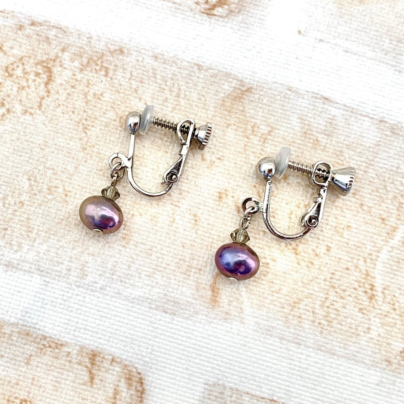 こちらはちょっと渋めなメタリックネイビーカラーでカジュアルなポテト型のピアスorイヤリングです。