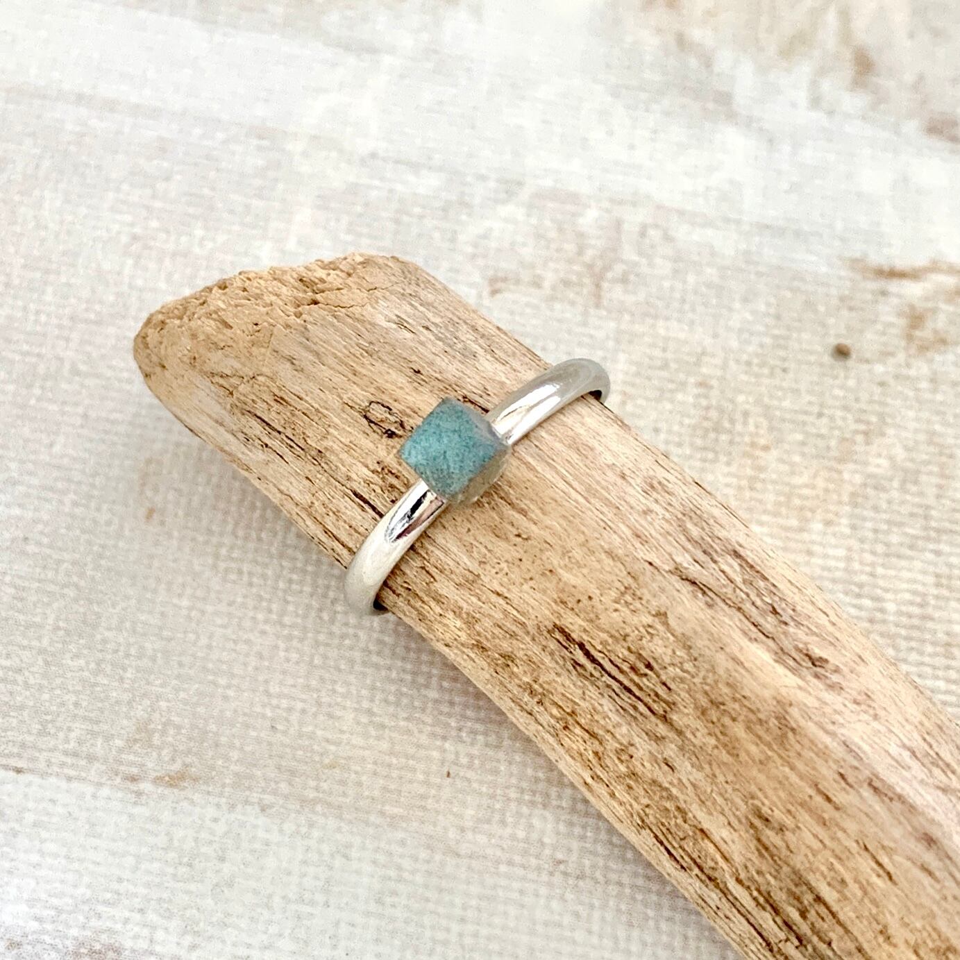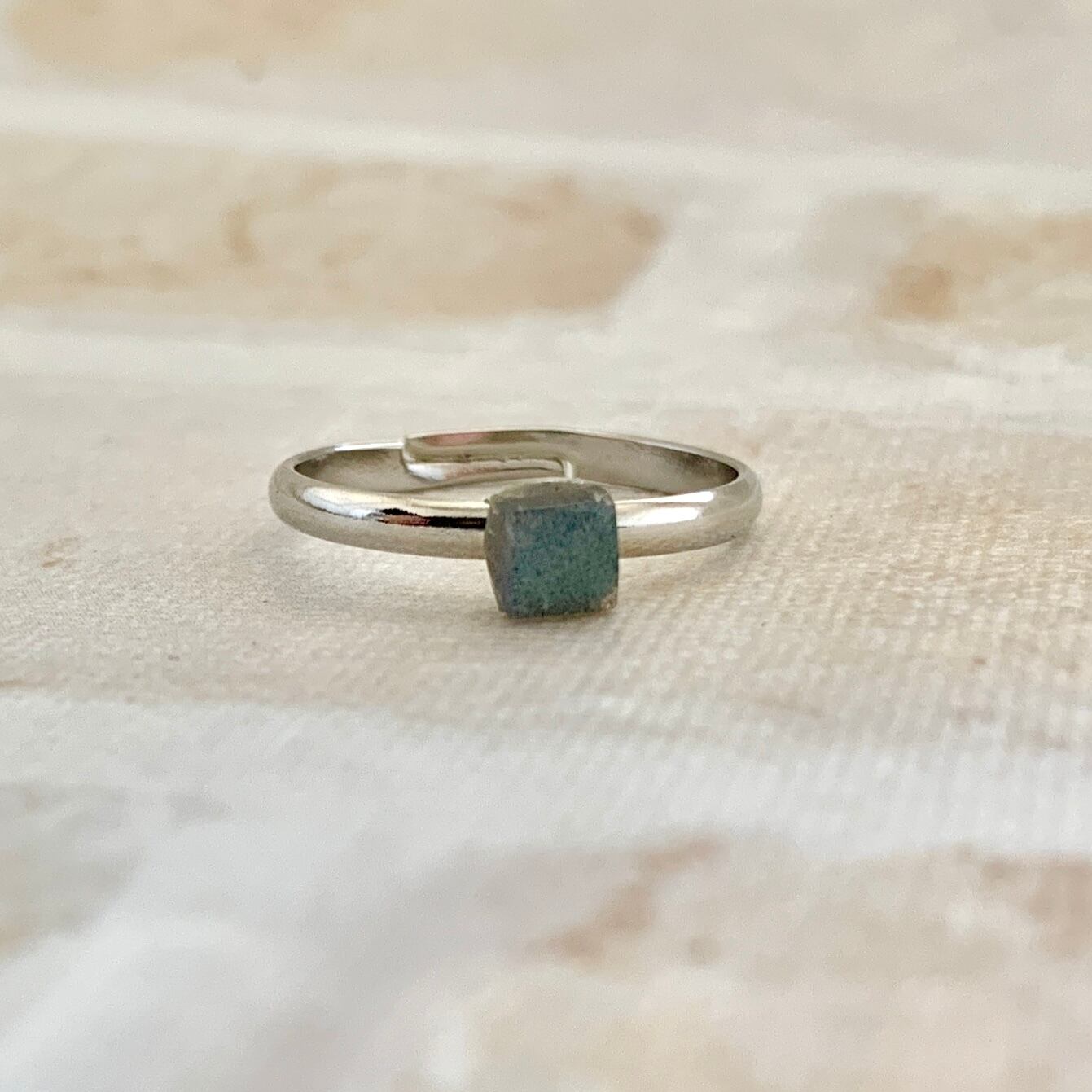 小粒サイズの石の中に綺麗なラブラドレッセンスが見える魅力的なシンプルデザインのリング。