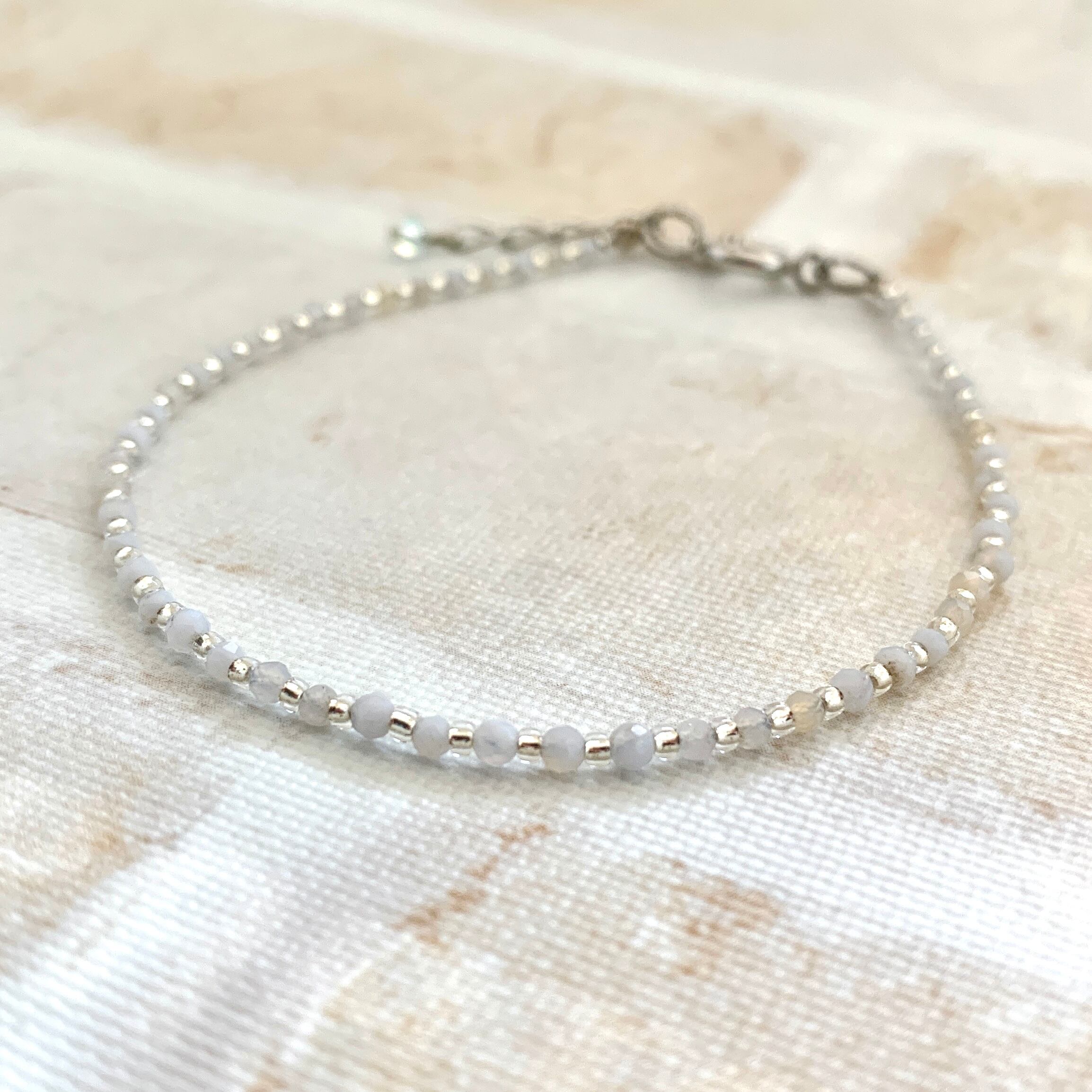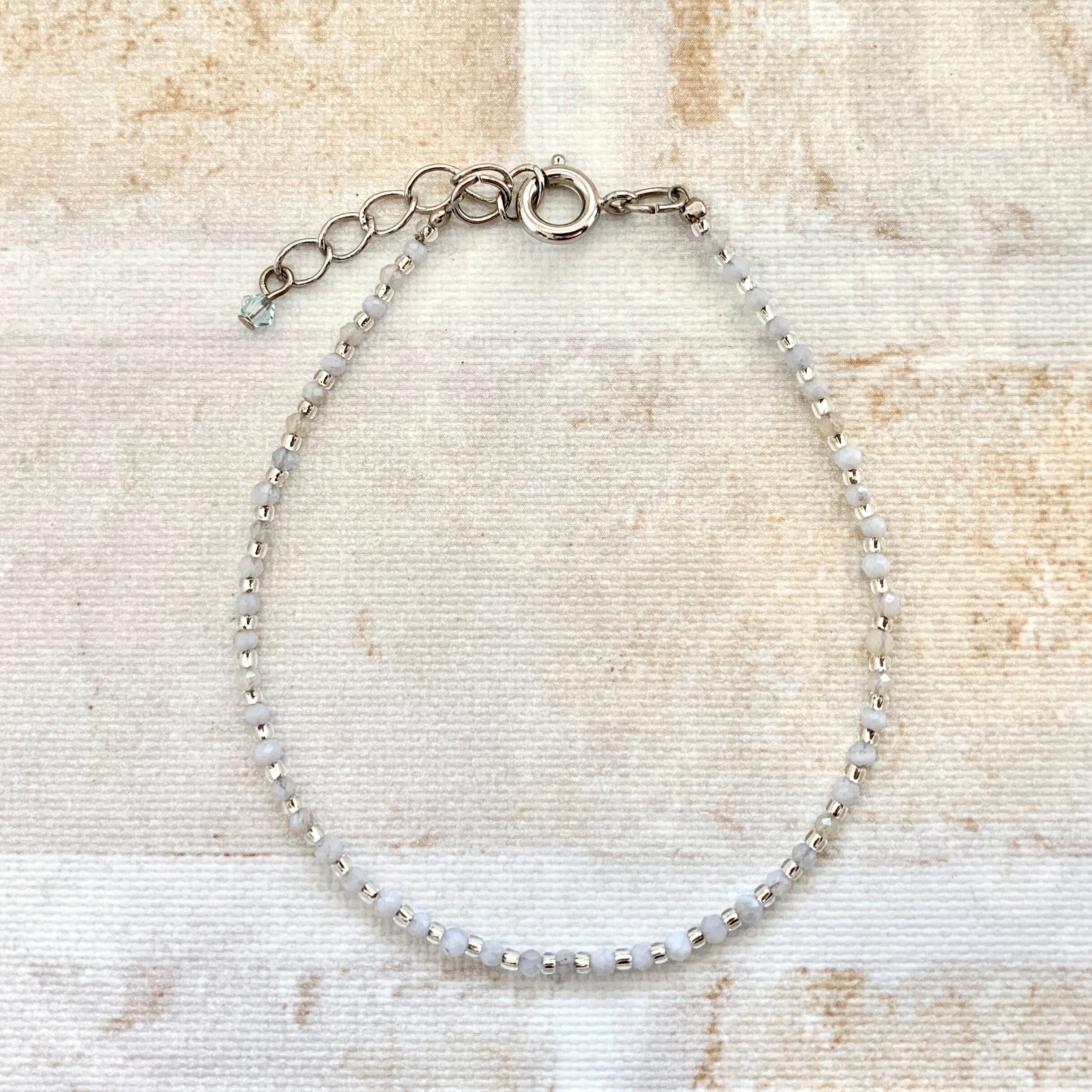 2㎜サイズの丸玉でととても小さなサイズですがカット加工を施しているためさりげない輝きがとても綺麗なデザインのブレスレットです。