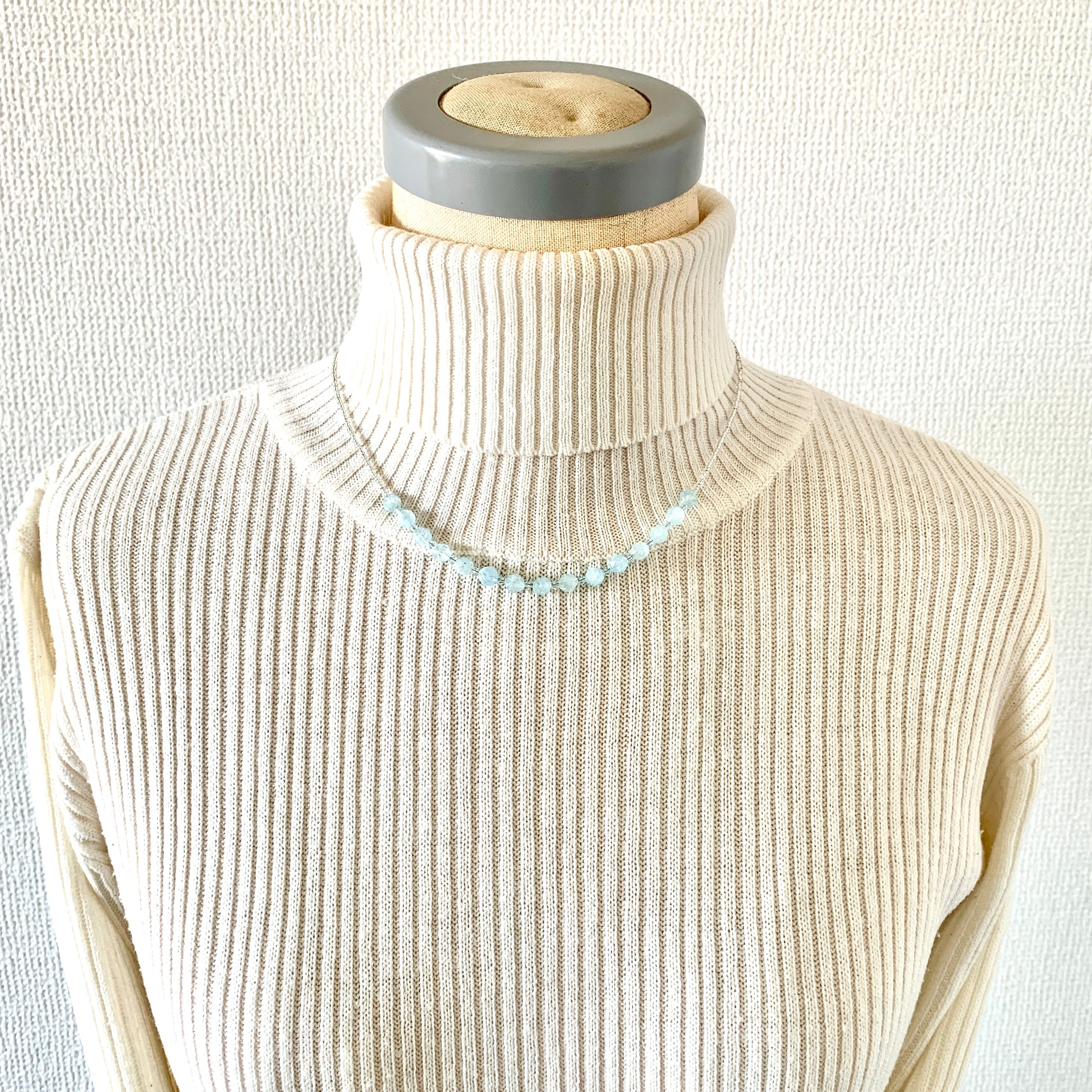 少しの角度の変化でキラキラとまばゆい輝きが見られる三角面のカットを全面に施したスターラウンドカットを使用してお作りしたネックレスです。